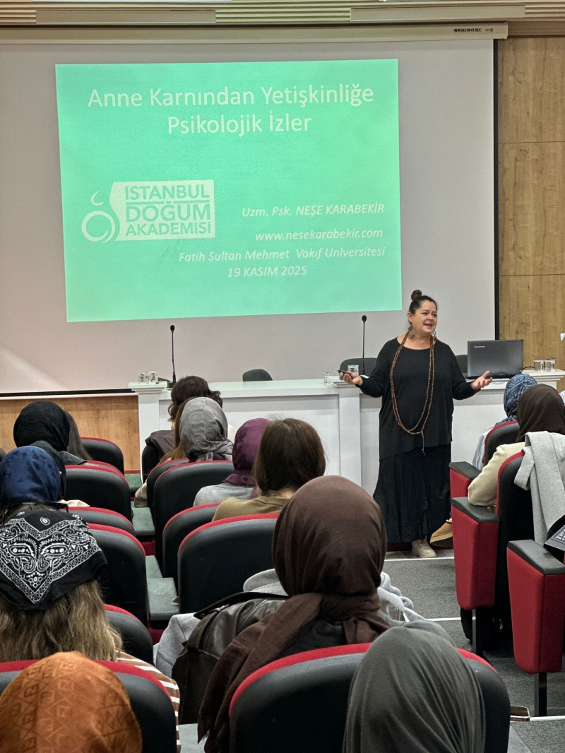 Dr. Öğr. Üyesi Fatıma Nurefşan Yumuşak koordinatörlüğünde organize edilen Yaşamın Başlangıcı: Anne Karnından Yetişkinliğe Psikolojik İzler seminerinde, gebelik ve doğum psikolojisi alanının önde gelen temsilcilerinden Uzman Psikolog-Psikodramatist Neşe Karabekir bizlerleydi.