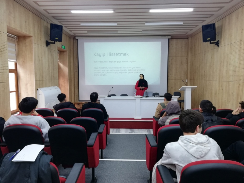 Gezinin devamında öğrenciler, Arş. Gör. Hatice Uysal tarafından gerçekleştirilen “Yönünü Kaybettiğinde Pusulanı Nasıl Ayarlarsın?” başlıklı; yön bulma, hedef belirleme ve kişisel motivasyonu sürdürebilme üzerine bir sunuma katıldılar.