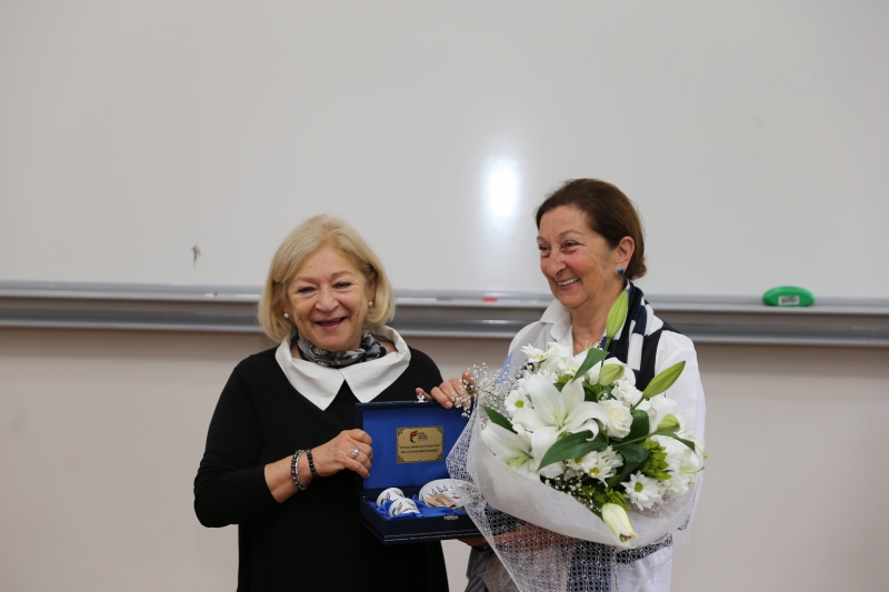 Çocukların kendi bedenlerini tanımalarının, “iyi dokunuş-kötü dokunuş” farkını bilmelerinin önemine ve istismarı önlemeye yönelik toplumsal, ailesel ve eğitsel düzlemde çeşitli stratejilere yer verilerek dinleyicilerin soruları ile devam eden konferans, Doç. Dr. Gaye SALTUKOĞLU’nun hediye takdimi ile sona erdi.